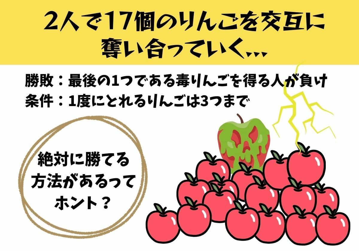 2人で17個のりんごを奪い合う「毒りんごゲーム」 勝ち続ける秘訣は割り算?